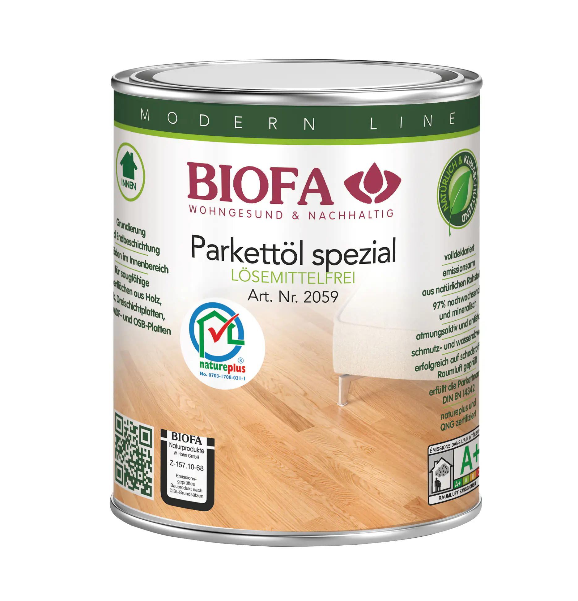 Olej do parkietów 2059 Do podłóg drewnianych. Opis Olej Biofa do parkietów jest bezbarwną mieszaniną olejów i wosków, bez dodatku rozpuszczalników. Produkt gwarantuje wytrzymałą , jedwabisto-matową, odporną powierzchnię przy jednoczesnym utrzymaniu naturalnego charakteru drewna. Zobacz również inne: Olej kolorowy 2110-2111 Olej do mebli 2049 Olej uniwersalny 2044