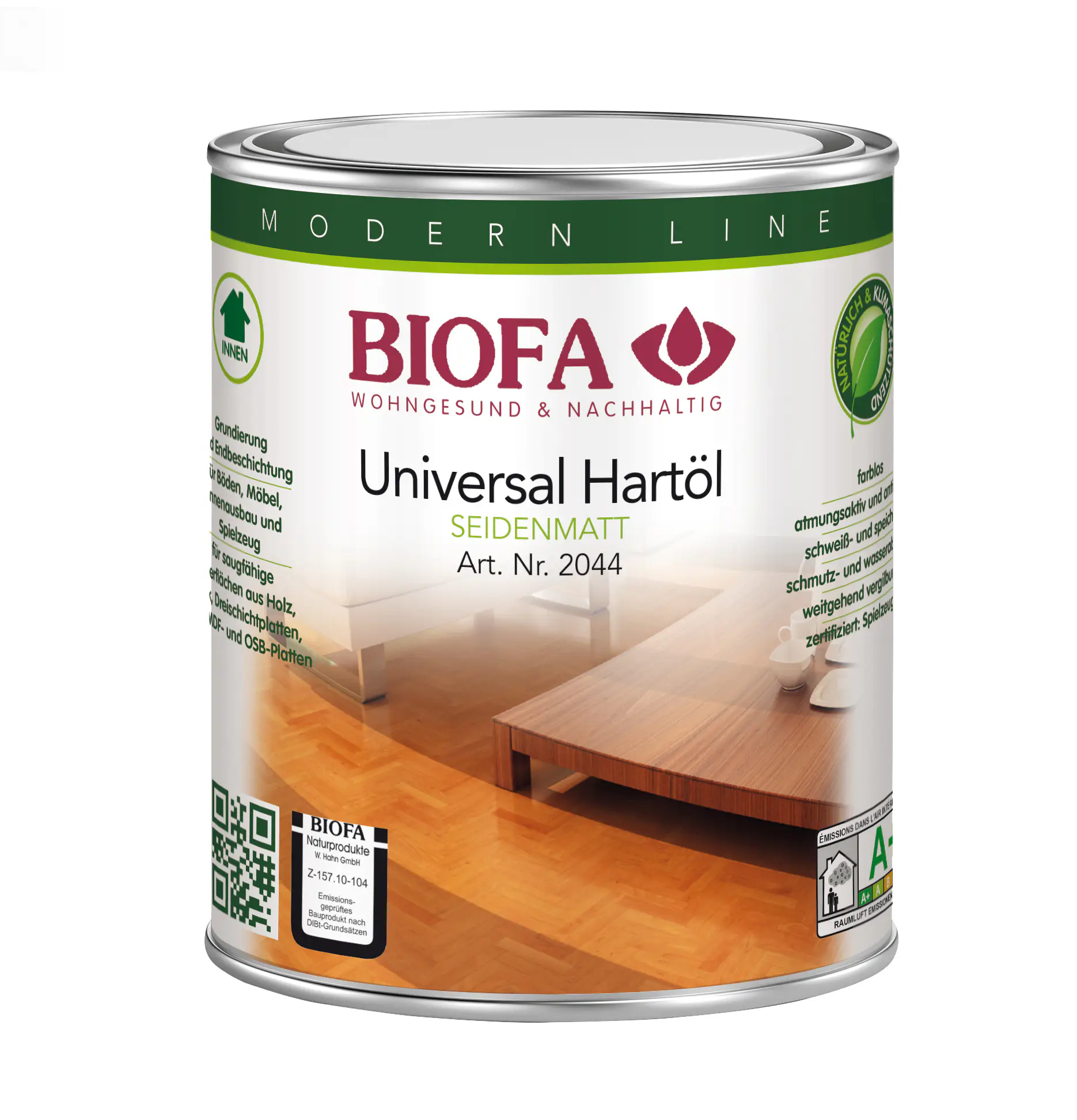Uniwersalny twardy olej Biofa Hard Oil 2044 jest najwyższej jakości produktem do zastosowania na różnych powierzchniach. Olej ten wzmaga naturalny wygląd drewna, eksponuje słoje, podkreśla kolor oraz nadaje matowe wykończenie. Jednocześnie nie zamyka porów zapewniając oddychanie drewna. Uzyskana powierzchnia jest odporna na zużycie i ścieranie, zabezpieczona przed wodą i żółknięciem.